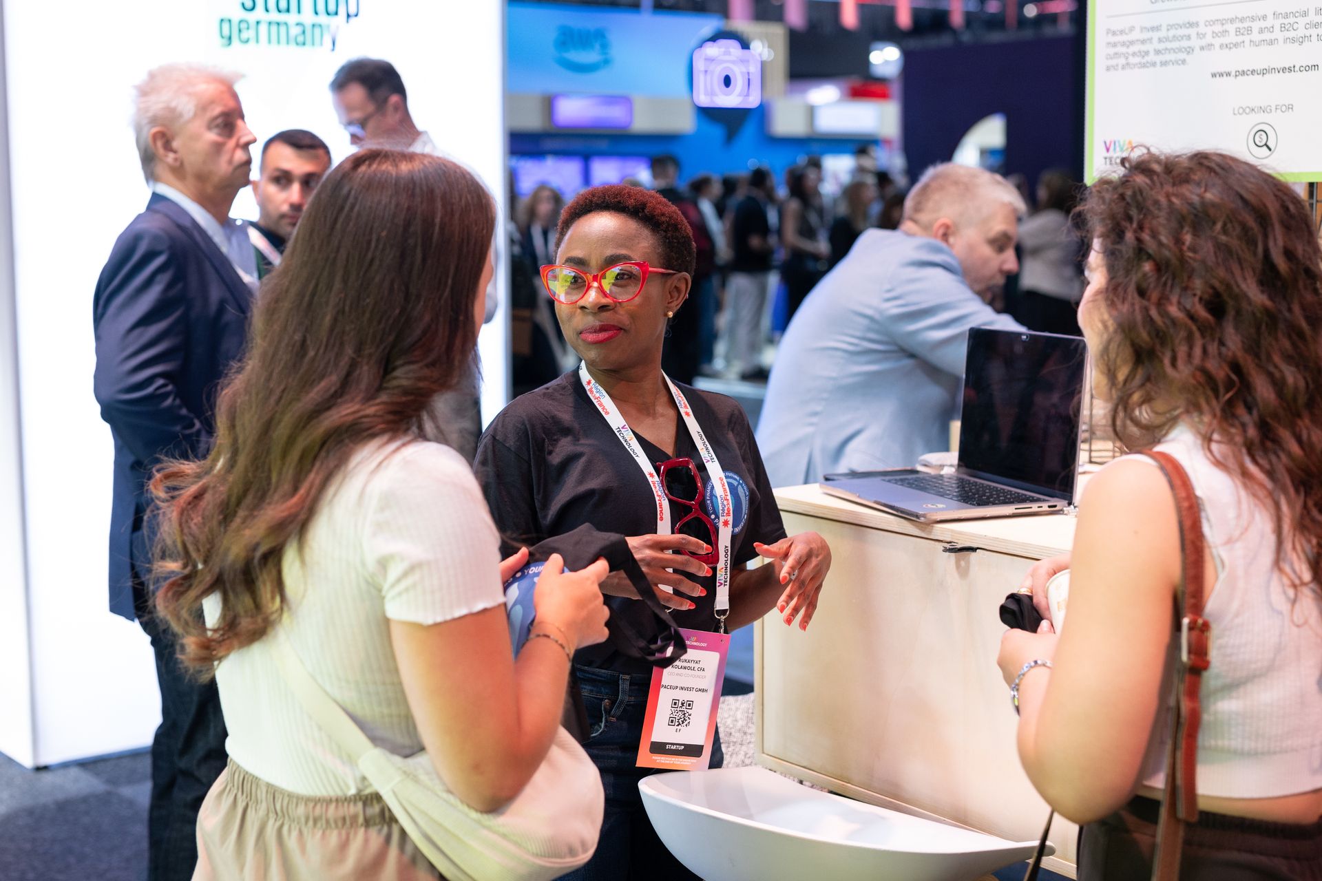Rukayyat speaking with delegates at Vivatech, 2025.