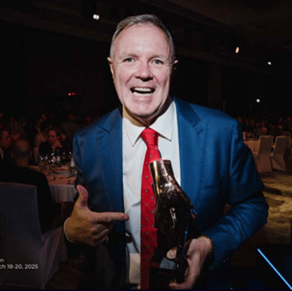 Rob Neely celebrating Securely Group’s award for Best Startup Innovation at the 2025 MPE (Merchant Payment Ecosystem) awards in Germany.